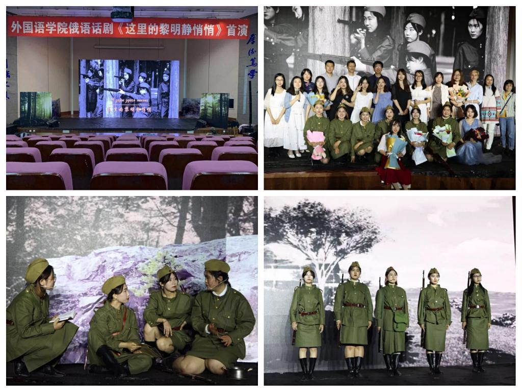 2019年是建国、建校70周年,也是中俄建交70周年。在中俄两国领导人向世界宣布将中俄关系提升为“中俄新时代全面战略协作伙伴关系”之际,2019年6月9日晚,我校首部大型俄语话剧《这里的黎明静悄悄》在研教楼报告厅首演成功!bifa必发唯一官网主页党政班子成员、俄语系师生、俄语外籍教师以及全校俄语学习爱好者共同观赏了演出。
