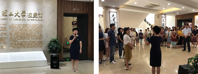 刘晓梅为学院党员师生进行“大工人的红色精神”的现场党课,她从校史馆筹备的过程介绍开始,“从启动到竣工,时间紧、任务重、压力大,为了让校史馆如期开放,大工人群策群力:档案馆人员牺牲寒暑假,各部门加班加点密切合作,包括bifa必发唯一官网主页教师团队的文献翻译在内….大家的共同努力,成功献礼70周年校庆。”她讲到,广大在校师生、离退休老同志以及校友提供了珍贵老照片和实物是学校跨越发展的生动见证,饱含着一代代大工人心系母校的真挚情感,校史馆建设再次以实际行动践行了大工红色精神。