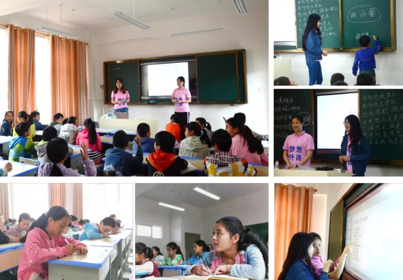 小学的教学目的主要围绕激发学习兴趣、培养良好学习习惯、拓展视野展开,开设了英语、国学、音乐、自然、绘画、地理等启蒙课程,以游戏、动画、电影等形式抓住孩子们的兴趣点,从全新的角度拓展知识面。许多孩子写下对10年后自己的期待,纸条上出现了“考上大学、走出大山、报效祖国”的语句,这更让支教团的成员们意识到了肩上的责任和支教活动的意义。