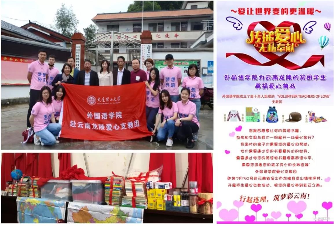 自5月份起,学院就邀请往届队员召开经验交流会,精心策划课程体系,启动爱心物品募集活动,最终选拔确定13名青年教师及学生组成本届支教队伍。这一次,支教团带着书籍和文具、带着爱心和知识、也带着想念与期待,继续传递外语人服务奉献的精神,种下一粒行起连理的种子,点亮筑梦龙陵的希望!