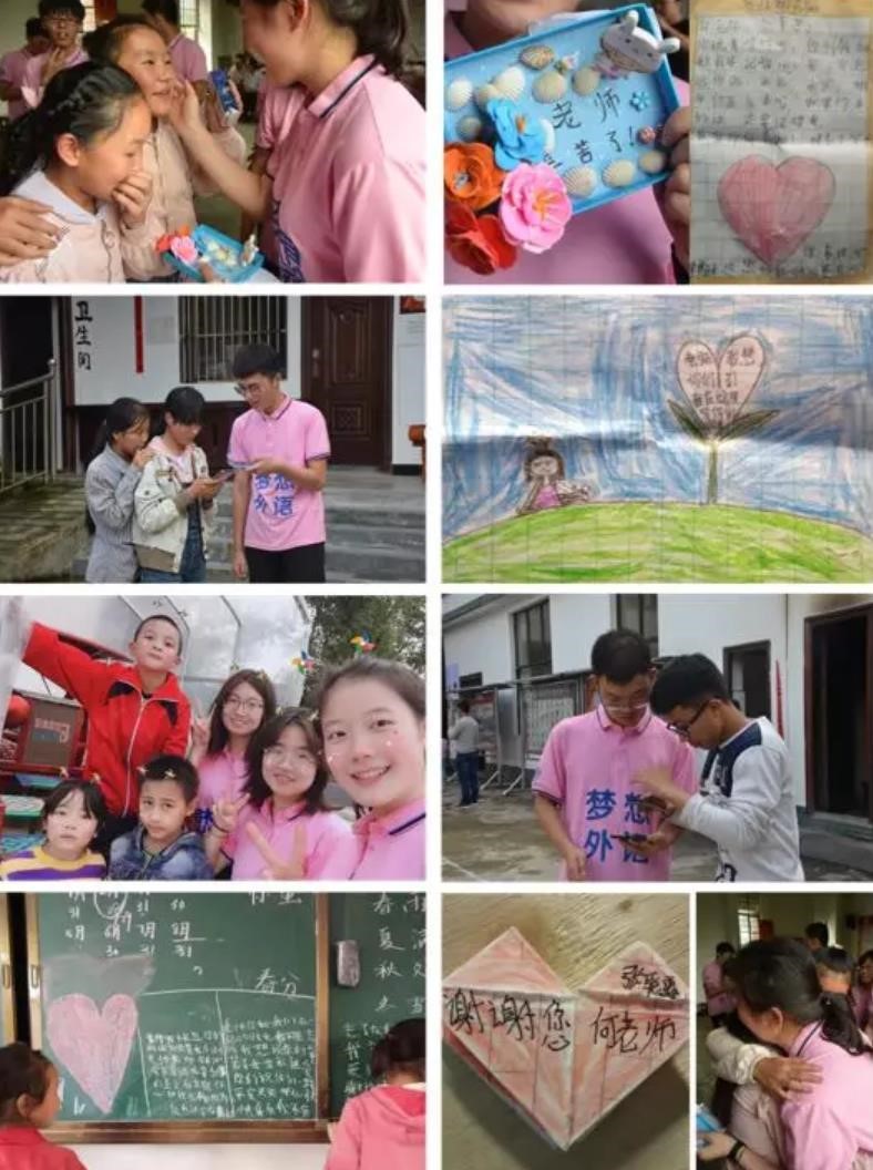小手递来一张张泛黄揉旧的作业纸,上面写满的是对老师们的感谢,教室黑板上一句句的寄语是他们对支教团成员们满满的思念和爱。深夜,支教团成员们的手机响动着一条条好友申请,那是山村孩子们的不舍;凌晨,坐在离开村子的车上仍然收到一句句真心留恋,那是山村孩子们的祝福。