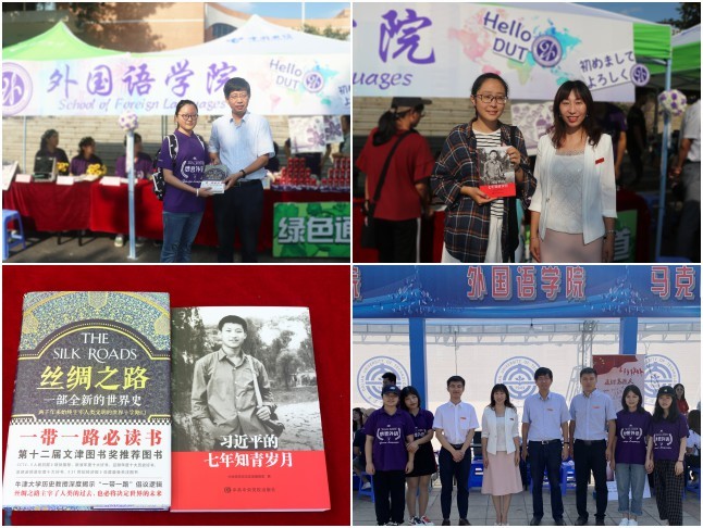 陈宏俊向新生赠书《丝绸之路》提升学生文化修养,张丽向新生赠书《习近平的七年知青岁月》进行传承红色基因教育。